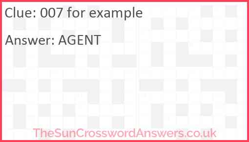 007 for example is a crossword clue for which we have 1 possible answer and we have spotted 2 times in our database. This crossword clue was last seen on 25 January 2025 in The Sun Coffee Time Crossword puzzle!