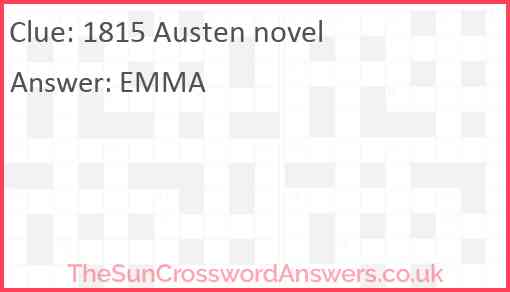 1815 Austen novel is a crossword clue for which we have 1 possible answer and we have spotted 6 times in our database. This crossword clue was last seen on 23 May 2025 in The Sun Coffee Time Crossword puzzle!
