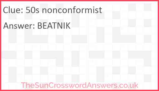50s nonconformist is a crossword clue for which we have 1 possible answer and we have spotted 1 times in our database. This crossword clue was last seen on 26 August 2021 in The Sun Coffee Time Crossword puzzle!