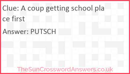 A coup getting school place first is a crossword clue for which we have 1 possible answer and we have spotted 2 times in our database. This crossword clue was last seen on 17 July 2025 in The Sun Cryptic Crossword puzzle!