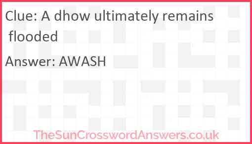 A dhow ultimately remains flooded is a crossword clue for which we have 1 possible answer and we have spotted 3 times in our database. This crossword clue was last seen on 06 May 2024 in The Sun Cryptic Crossword puzzle!