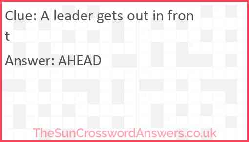 A leader gets out in front is a crossword clue for which we have 1 possible answer and we have spotted 1 times in our database. This crossword clue was last seen on 20 February 2023 in The Sun Cryptic Crossword puzzle!