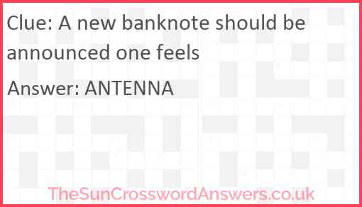 A new banknote should be announced one feels is a crossword clue for which we have 1 possible answer and we have spotted 2 times in our database. This crossword clue was last seen on 06 September 2022 in The Sun Cryptic Crossword puzzle!