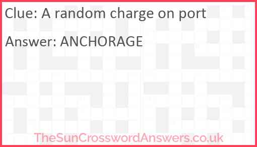 A random charge on port is a crossword clue for which we have 1 possible answer and we have spotted 1 times in our database. This crossword clue was last seen on 15 December 2024 in The Sun Cryptic Crossword puzzle!