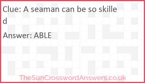A seaman can be so skilled is a crossword clue for which we have 1 possible answer and we have spotted 2 times in our database. This crossword clue was last seen on 13 May 2024 in The Sun Cryptic Crossword puzzle!