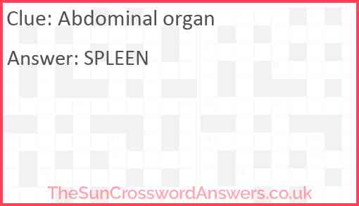 Abdominal organ is a crossword clue for which we have 1 possible answer and we have spotted 1 times in our database. This crossword clue was last seen on 25 April 2024 in The Sun Coffee Time Crossword puzzle!
