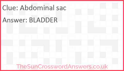 Abdominal sac is a crossword clue for which we have 1 possible answer and we have spotted 1 times in our database. This crossword clue was last seen on 10 March 2025 in The Sun Coffee Time Crossword puzzle!