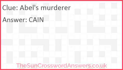 Abel's murderer is a crossword clue for which we have 1 possible answer and we have spotted 1 times in our database. This crossword clue was last seen on 21 April 2024 in The Sun Coffee Time Crossword puzzle!