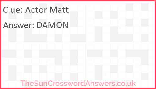 Actor Matt is a crossword clue for which we have 1 possible answer and we have spotted 1 times in our database. This crossword clue was last seen on 30 July 2023 in The Sun Coffee Time Crossword puzzle!