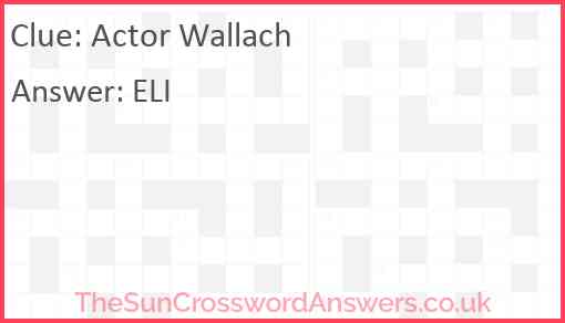 Actor Wallach is a crossword clue for which we have 1 possible answer and we have spotted 1 times in our database. This crossword clue was last seen on 08 December 2024 in The Sun Coffee Time Crossword puzzle!