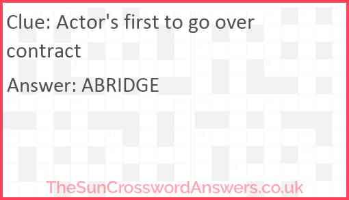 Actor's first to go over contract is a crossword clue for which we have 1 possible answer and we have spotted 1 times in our database. This crossword clue was last seen on 16 May 2024 in The Sun Cryptic Crossword puzzle!