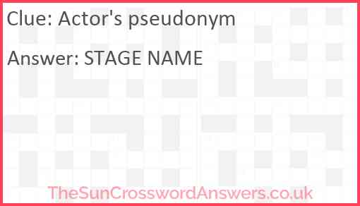 Actor's pseudonym is a crossword clue for which we have 2 possible answer and we have spotted 2 times in our database. This crossword clue was last seen on 15 February 2024 in The Sun Coffee Time Crossword puzzle!
