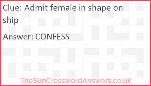 Admit female in shape on ship is a crossword clue for which we have 1 possible answer and we have spotted 3 times in our database. This crossword clue was last seen on 17 June 2025 in The Sun Cryptic Crossword puzzle!