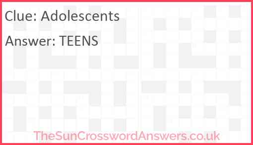 Adolescents is a crossword clue for which we have 1 possible answer and we have spotted 3 times in our database. This crossword clue was last seen on 11 July 2024 in The Sun Coffee Time Crossword puzzle!