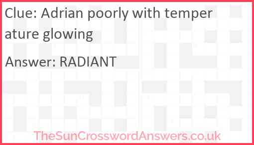 Adrian poorly with temperature glowing is a crossword clue for which we have 1 possible answer and we have spotted 2 times in our database. This crossword clue was last seen on 30 April 2024 in The Sun Cryptic Crossword puzzle!