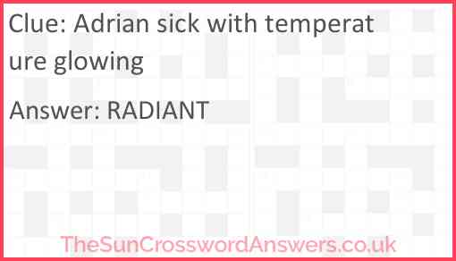 Adrian sick with temperature glowing is a crossword clue for which we have 1 possible answer and we have spotted 2 times in our database. This crossword clue was last seen on 13 December 2024 in The Sun Cryptic Crossword puzzle!