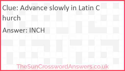 Advance slowly in Latin Church is a crossword clue for which we have 1 possible answer and we have spotted 2 times in our database. This crossword clue was last seen on 18 December 2024 in The Sun Cryptic Crossword puzzle!