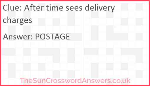 After time sees delivery charges is a crossword clue for which we have 1 possible answer and we have spotted 2 times in our database. This crossword clue was last seen on 20 September 2024 in The Sun Cryptic Crossword puzzle!