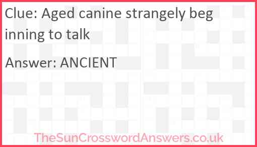 Aged canine strangely beginning to talk is a crossword clue for which we have 1 possible answer and we have spotted 2 times in our database. This crossword clue was last seen on 12 February 2025 in The Sun Cryptic Crossword puzzle!