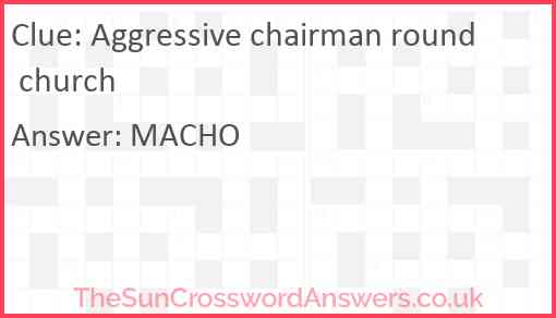 Aggressive chairman round church is a crossword clue for which we have 1 possible answer and we have spotted 2 times in our database. This crossword clue was last seen on 23 June 2022 in The Sun Cryptic Crossword puzzle!