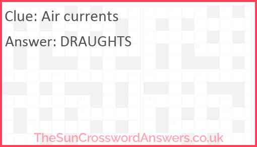 Air currents is a crossword clue for which we have 1 possible answer and we have spotted 4 times in our database. This crossword clue was last seen on 26 April 2023 in The Sun Coffee Time Crossword puzzle!