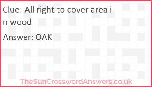 All right to cover area in wood is a crossword clue for which we have 1 possible answer and we have spotted 1 times in our database. This crossword clue was last seen on 24 February 2023 in The Sun Cryptic Crossword puzzle!