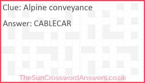 Alpine conveyance is a crossword clue for which we have 1 possible answer and we have spotted 2 times in our database. This crossword clue was last seen on 24 November 2023 in The Sun Coffee Time Crossword puzzle!