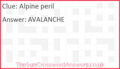 Alpine peril is a crossword clue for which we have 1 possible answer and we have spotted 3 times in our database. This crossword clue was last seen on 30 November 2024 in The Sun Coffee Time Crossword puzzle!