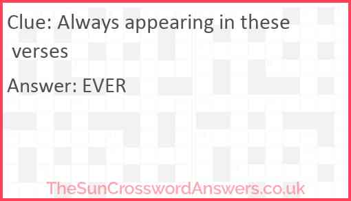 Always appearing in these verses is a crossword clue for which we have 1 possible answer and we have spotted 3 times in our database. This crossword clue was last seen on 03 January 2023 in The Sun Cryptic Crossword puzzle!