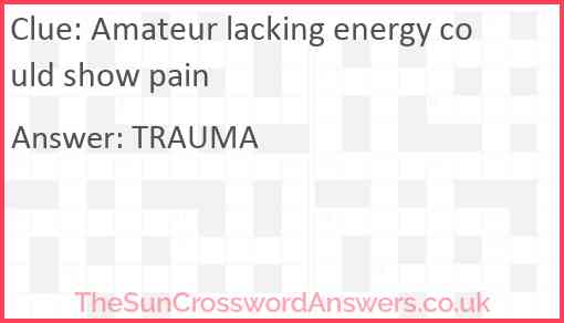 Amateur lacking energy could show pain is a crossword clue for which we have 1 possible answer and we have spotted 1 times in our database. This crossword clue was last seen on 14 February 2020 in The Sun Cryptic Crossword puzzle!
