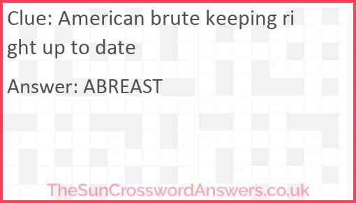 American brute keeping right up to date is a crossword clue for which we have 1 possible answer and we have spotted 2 times in our database. This crossword clue was last seen on 08 September 2024 in The Sun Cryptic Crossword puzzle!