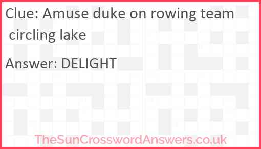 Amuse duke on rowing team circling lake is a crossword clue for which we have 1 possible answer and we have spotted 2 times in our database. This crossword clue was last seen on 20 February 2025 in The Sun Cryptic Crossword puzzle!