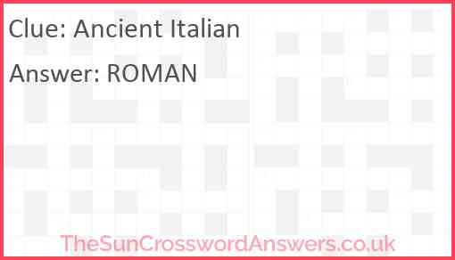 Ancient Italian is a crossword clue for which we have 2 possible answer and we have spotted 5 times in our database. This crossword clue was last seen on 12 July 2024 in The Sun Coffee Time Crossword puzzle!