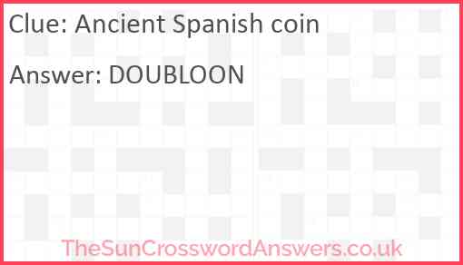 Ancient Spanish coin is a crossword clue for which we have 1 possible answer and we have spotted 1 times in our database. This crossword clue was last seen on 03 June 2022 in The Sun Coffee Time Crossword puzzle!