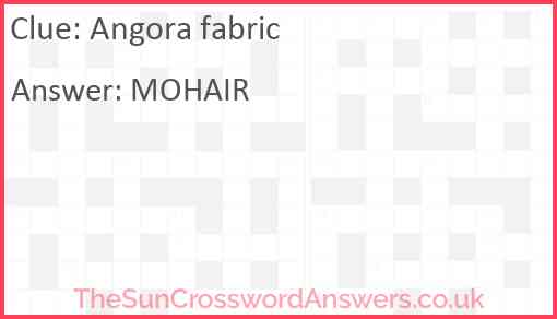 Angora fabric is a crossword clue for which we have 1 possible answer and we have spotted 7 times in our database. This crossword clue was last seen on 23 January 2025 in The Sun Coffee Time Crossword puzzle!