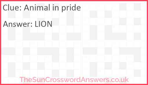 Animal in pride is a crossword clue for which we have 1 possible answer and we have spotted 1 times in our database. This crossword clue was last seen on 28 December 2018 in The Sun Coffee Time Crossword puzzle!