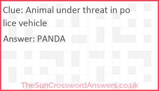 Animal under threat in police vehicle is a crossword clue for which we have 1 possible answer and we have spotted 3 times in our database. This crossword clue was last seen on 25 September 2023 in The Sun Cryptic Crossword puzzle!