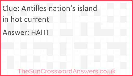 Antilles nation's island in hot current is a crossword clue for which we have 1 possible answer and we have spotted 2 times in our database. This crossword clue was last seen on 24 July 2024 in The Sun Cryptic Crossword puzzle!