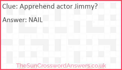Apprehend actor Jimmy? is a crossword clue for which we have 1 possible answer and we have spotted 1 times in our database. This crossword clue was last seen on 09 January 2024 in The Sun Cryptic Crossword puzzle!