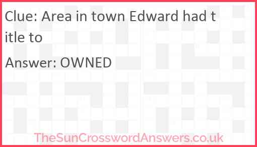Area in town Edward had title to is a crossword clue for which we have 1 possible answer and we have spotted 1 times in our database. This crossword clue was last seen on 16 June 2020 in The Sun Cryptic Crossword puzzle!