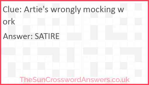 Artie's wrongly mocking work is a crossword clue for which we have 1 possible answer and we have spotted 1 times in our database. This crossword clue was last seen on 22 March 2025 in The Sun Cryptic Crossword puzzle!