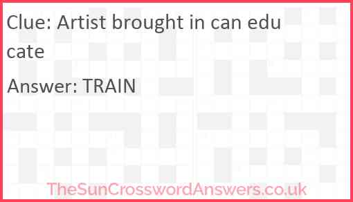 Artist brought in can educate is a crossword clue for which we have 1 possible answer and we have spotted 4 times in our database. This crossword clue was last seen on 22 February 2024 in The Sun Cryptic Crossword puzzle!