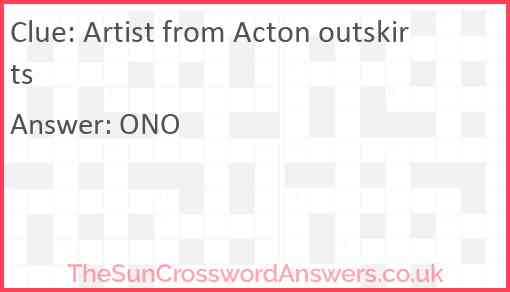 Artist from Acton outskirts is a crossword clue for which we have 1 possible answer and we have spotted 1 times in our database. This crossword clue was last seen on 24 May 2020 in The Sun Cryptic Crossword puzzle!
