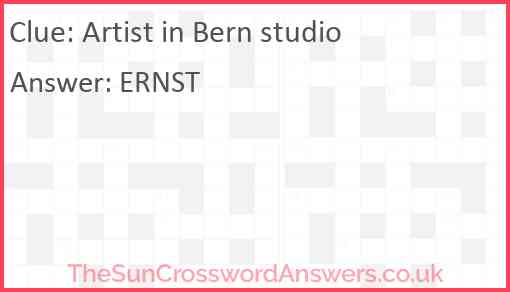 Artist in Bern studio is a crossword clue for which we have 1 possible answer and we have spotted 2 times in our database. This crossword clue was last seen on 10 October 2022 in The Sun Cryptic Crossword puzzle!