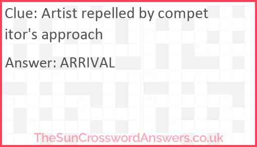 Artist repelled by competitor's approach is a crossword clue for which we have 1 possible answer and we have spotted 2 times in our database. This crossword clue was last seen on 14 August 2023 in The Sun Cryptic Crossword puzzle!