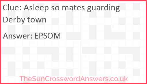 Asleep so mates guarding Derby town is a crossword clue for which we have 1 possible answer and we have spotted 1 times in our database. This crossword clue was last seen on 02 August 2021 in The Sun Cryptic Crossword puzzle!
