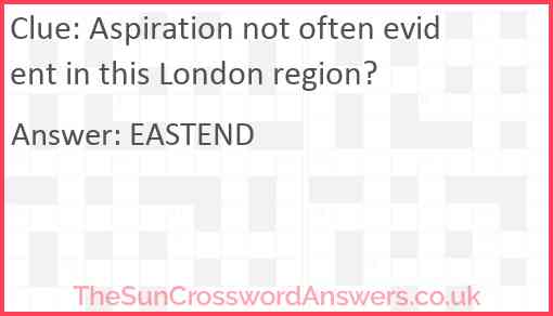Aspiration not often evident in this London region? is a crossword clue for which we have 1 possible answer and we have spotted 1 times in our database. This crossword clue was last seen on 03 April 2025 in The Sun Cryptic Crossword puzzle!