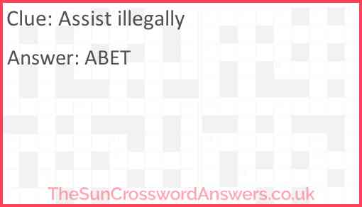 Assist illegally is a crossword clue for which we have 1 possible answer and we have spotted 7 times in our database. This crossword clue was last seen on 29 December 2024 in The Sun Coffee Time Crossword puzzle!
