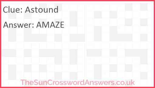 Astound is a crossword clue for which we have 1 possible answer and we have spotted 11 times in our database. This crossword clue was last seen on 24 November 2024 in The Sun Coffee Time Crossword puzzle!