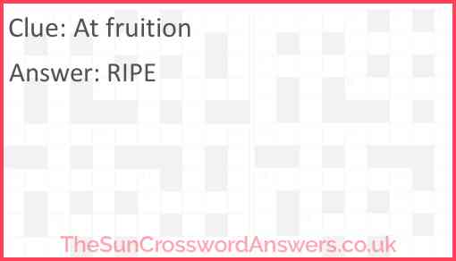 At fruition is a crossword clue for which we have 1 possible answer and we have spotted 8 times in our database. This crossword clue was last seen on 04 May 2024 in The Sun Coffee Time Crossword puzzle!